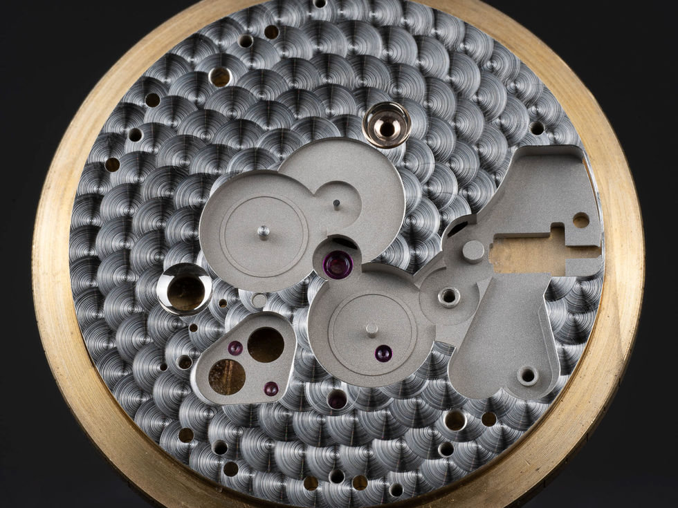 On the dial and setting side, significant geometric alterations from the original caliber necessitate bespoke machining of components like the canon pinion, setting lever jumper, and hour/minute hand wheels. Although these components remain unseen, each is finished to the same rigorous standards upheld throughout the entirety of the movement.