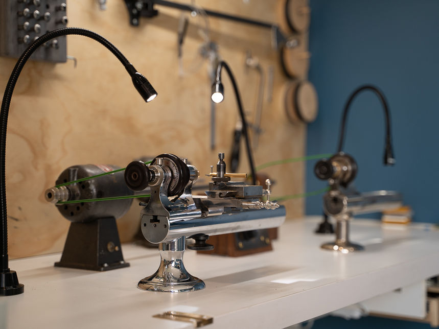 My workshop is located in my hometown of Saskatoon, Saskatchewan. I blend traditional techniques with modern technology to create new and exciting designs and possibilities. For me, the machines I use are just as crucial as the timepieces they help create. Being far from the Swiss hub of watchmaking, sourcing tools and machines has been a challenge. I’ve had to make some of my own machines and setups to ensure my workshop can handle the precise finishing work I demand.